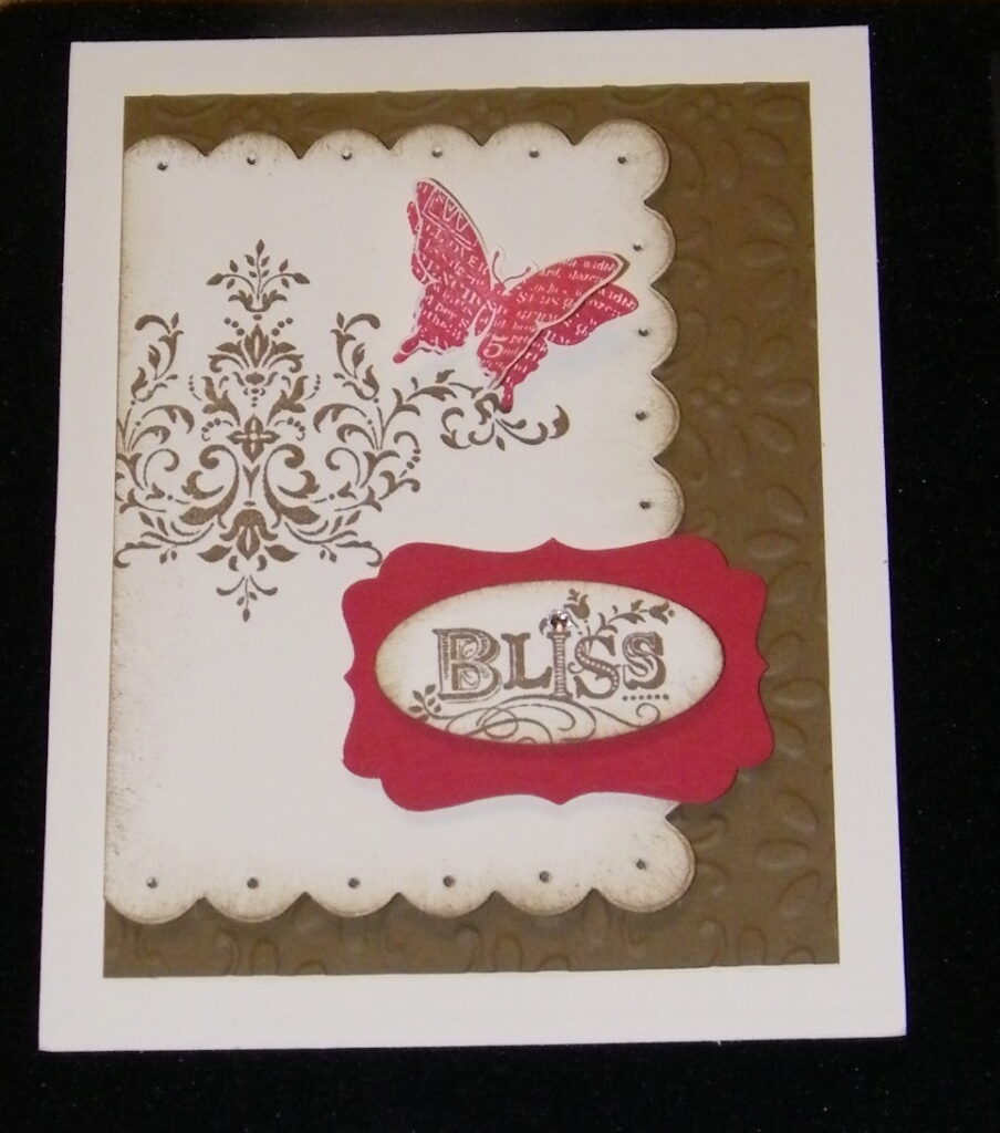 Here's another card from the Minneapolis Regional that I received…and it's another Laurie Zoellmer card!  Beautiful!  She used the Boho Punch and the exclusive hostess set PUNCH POTPOURRI – a Level 1 – along with BLISS!