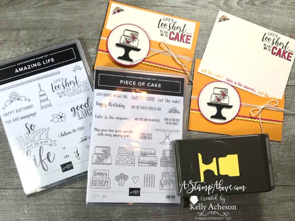 I chose the PIECE OF CAKE bundle and the AMAZING LIFE stamp set to create a fun and punny little pocket card. I have all the details in this video tutorial:
