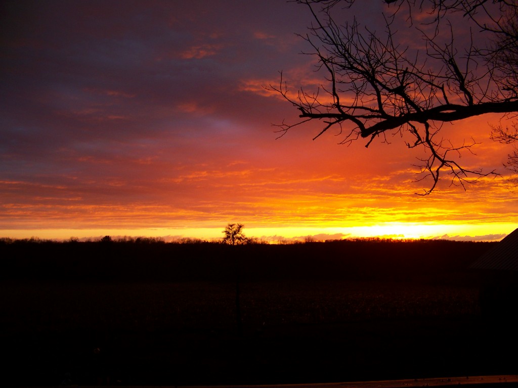 1.  I started with a GORGEOUS sunset photo taken my by mother – Karen Flynn.  She loves to take photos and has a ton of outstanding sunsets!!!  This is the view out her patio door in Central Wisconsin…the branch on the right is a very old and large walnut tree.